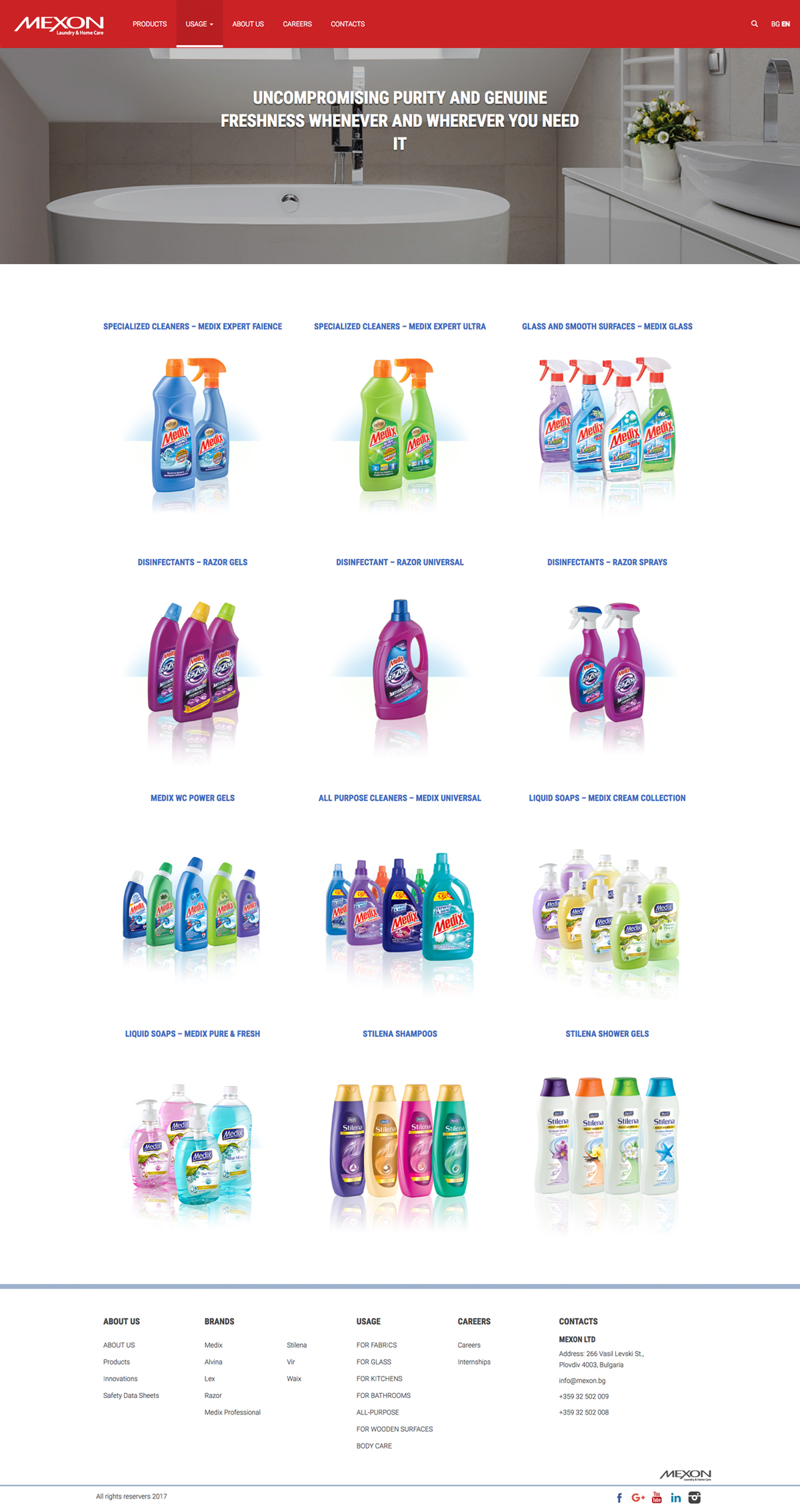 With MEXON the life of every Bulgarian family is for sure better, easier and healthier. Thanks to the new product website we’ve created for the company now users can quickly choose the home products they need. What to use for parquet cleaning? Or the bathroom? And what about the windows? The project includes designing strategy for online presence, website redesign with full products’ information. Users can make their choice either by brand name or by product usage. Thus we made the search of laundry, cleaning and home cosmetics as easy as eating a pie. We used WordPress and automatic integration with the old MEXON website.
